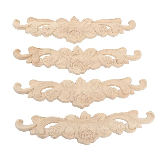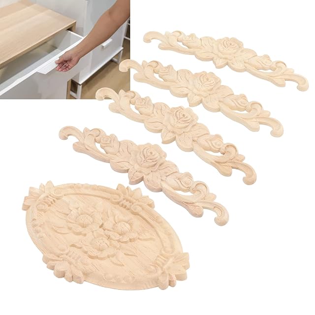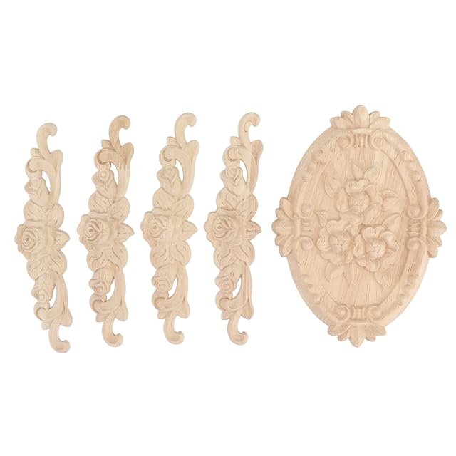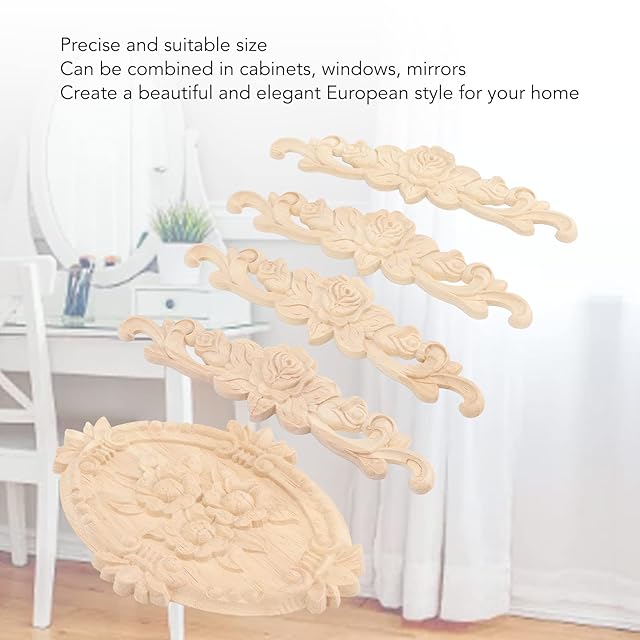 5pcs 木製デカール 木製のアップリケ 木彫り装飾 木製アップリケ 家具アップリケ 彫刻アップリケ 家具装飾アップリケ 家具 木彫り 未塗装 壁 ドア キャビネット 食器棚