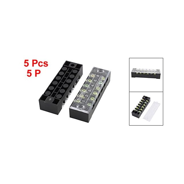 uxcell 端子台 600V 15A 6ポジション 6P 2列 カバー付き バ リアネジ端子台 5個