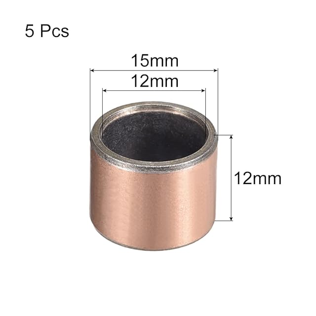 uxcell スリーブプレーンベアリング 内径12mm 外径15mm 長さ12mm オイルレスブシュ 多孔質青銅焼結炭素鋼ベース 5個入り