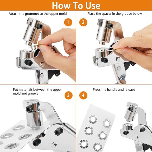 【優れた品質】グロメットツールキットの耐久性のある高純度金属を採用し、より長い寿命を実現します。この手動アイレットパンチャーは、500pcsアイレットが含まれている内径3/8インチ(10mm)のアイレットをマッチアップします。