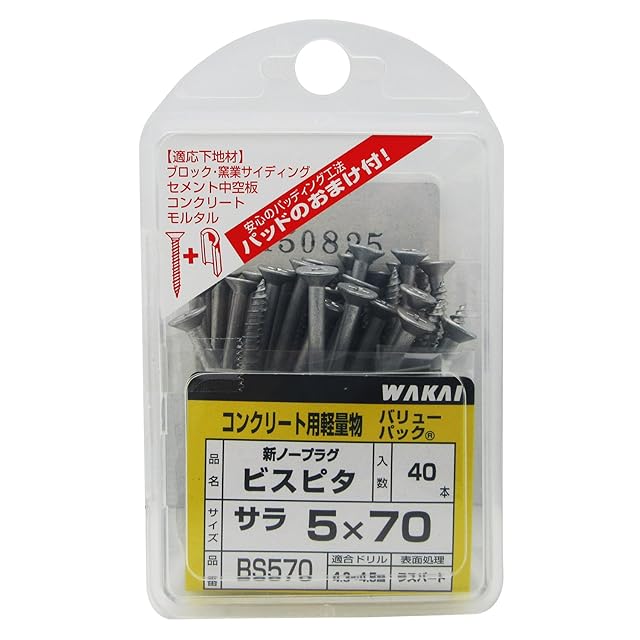 若井産業 ビスピタ(バリューパック) シルバーカラーコート コンクリート用 サラ頭 全長:5.0×70mm 40本入り BS570