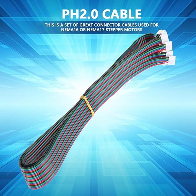 特徴<br> これはNema16またはNema17ステッピングモーターに使用される優れたコネクターケーブルのセットです<br> これらのコネクタケーブルは耐久性と長期的な使用のための高級PVC素材でできています<br> ケーブルは約1メートルの長さで使いやすく接続しやすいです<br> 正確な設計は高性能の仕事の実用性を保障します<br> あなたが多くのプロジェクトに使用することができる1セットに合計5個のケーブルがあります<br> 仕様<br> 材質PVC<br> コネクタPH2.0メス-XH2.54メス<br> ケーブル長約 1m / 3.2ft<br> 数量5個<br> パッケージに含まれるもの<br> 5×コネクタケーブル