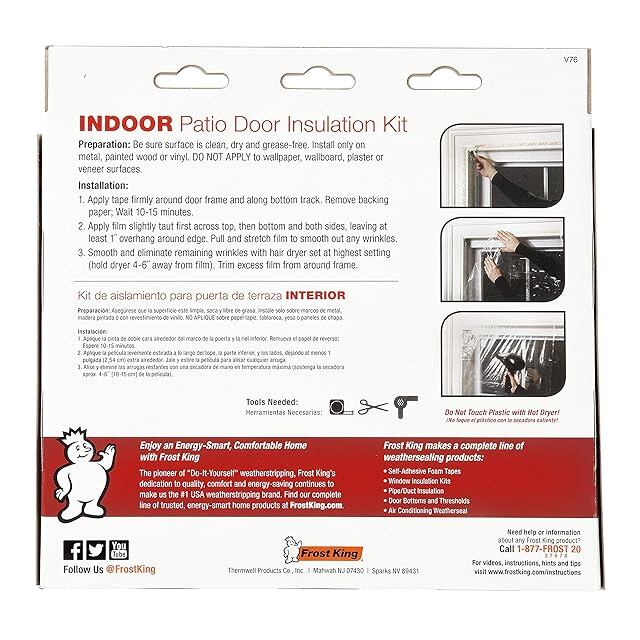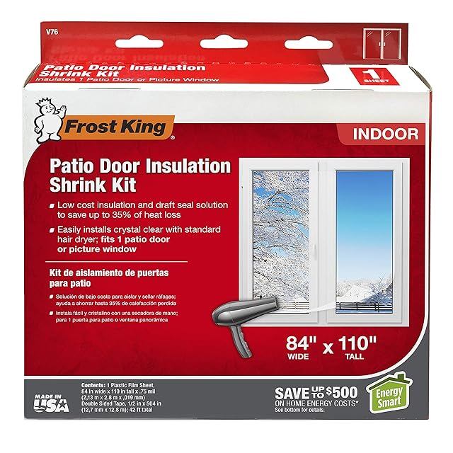 Up to 35% of the heat in your house can leak out of poorly insulated windows. Frost King Shrink Film is the perfect low cost solution to keeping drafts and cold out of your house. Easy to install, it takes just minutes to put them over all the windows in your house, Frost King Window Shrink Film will keep the heat in and the cold out all winter long. Crystal clear plastic sheet shrinks tight and wrinkle free with heat from an ordinary hand held hairdryer Includes double face tape Installs on metal, painted or varnished wood, or vinyl clad frames For indoor use only Covers one patio door or picture window Can be cut to fit using standard scissors Reduces energy costs by sealing drafty windows Increases your home’s energy efficiency Easy to install