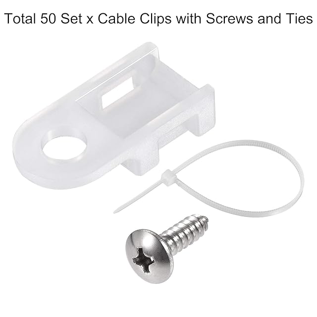 uxcell ケーブル固定クリップ 19 mm x 9 mm x 4.6 mm ナイロン ネジとネクタイ付き ホワイト 50セット