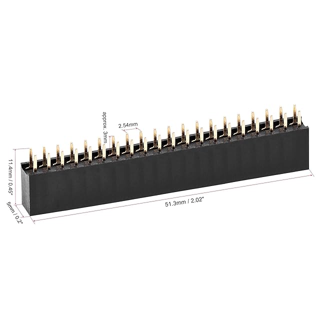[メインパラメータ] 合計ピン数: 40; ピン列: 2; ピンピッチ: 2.54mm; 全体的なサイズ: 51.3 x 5 x 11.4 mm(L*W*H)。