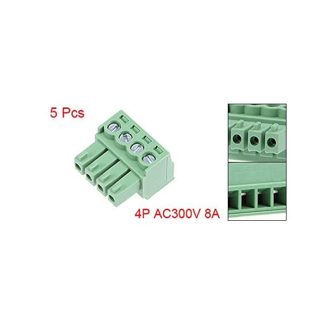 uxcell PCBターミナルブロック コネクタ グリーン AC300V 8A ピッチ3.81mm 4P フラットアングル ニードルシート プラグイン 5個入り