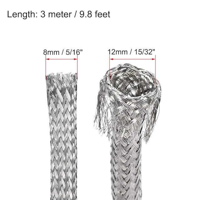 uxcell スリーブ付き拡張可能ホースカバー 3 M-8 mm 錫メッキ銅