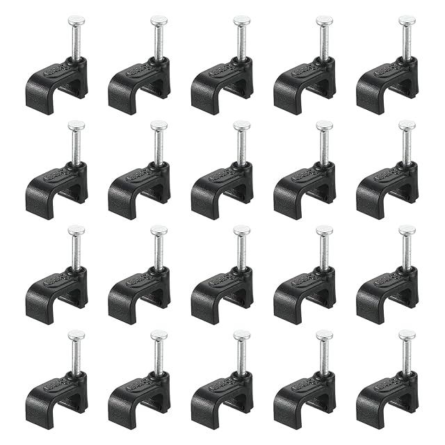 uxcell スチールネイル付きケーブルクリップ 100個8mm/0.31"プラスチックケーブルワイヤークリップ 家庭用ワイヤーケーブルコード管理用のネイルインケーブルクリップ 黒