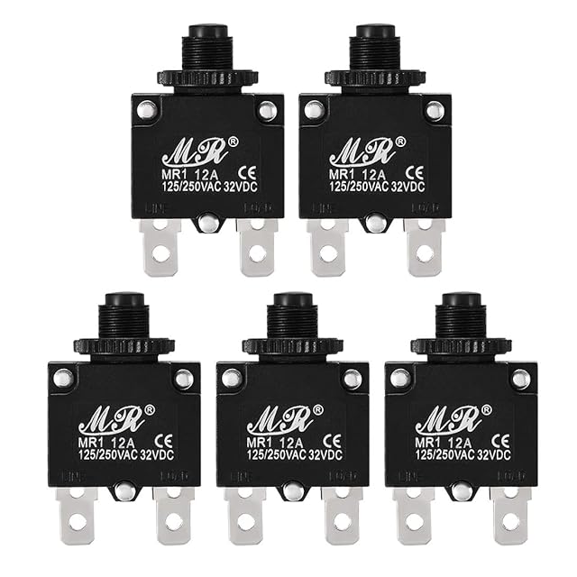 仕様:<br />動作電圧:AC 125 / 250V<br />電流:12A<br />ネジ径:10mm<br />スイッチタイプ:プッシュボタンリセット<br />合計サイズ:28×13×46mm(L×W×H)<br />材質:プラスチック、金属<br />メインカラー:ブラック<br />パッケージ内容:サーキットブレーカ過負荷保護装置5個入り<br />説明:<br />1.負荷が定格電流を超えると、スイッチリセットボタンが自動的に回路を遮断し、ラインを保護する役割を果たします。<br />2.このスイッチは、一定期間切断した後にリセットできます。その後、リセットスイッチを押すと再び使用できます。<br />3.コンパクト設計により高密度回路保護構成が可能です。耐久性のあるプラスチック製、、長寿命。<br />4.この交換用回路リセットブレーカは、最大12Aの保護を必要とするさまざまな用途に使用できます。<br />5.サーキットブレーカリセットボタンは多くの用途に使用できます。それは自動車、産業および海洋産業で広く利用されています。