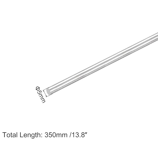 丸棒は304ステンレス鋼製で、色はシルバートーン、軸径:5mm、軸長:350mm、2個 x ステンレス鋼丸棒。