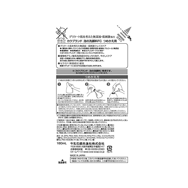 カウブランド 無添加 泡の洗顔料 つめかえ用 180ml×2個 180ミリリットル (x 2)