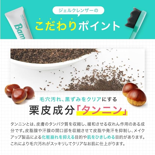 【ポイント①】毛穴より細い!新感覚やわらかブラシで毛穴の奥の汚れをやさしく掻き出して、つるつる肌に【ポイント②】開いた毛穴をキュッ!クーリングゼリーで頑固な角栓や詰まりをオフにしながら、毛穴を引きしめキメの細かい肌に整える【ポイント③】特許取得済の毛穴ケア成分配合【ポイント④】栗の花エキス40%配合!栗皮の中に渋みを出すタンニン成分が過剰な皮脂調節と毛穴ケアに効果あり【ポイント⑤】ピクノジェール(フランス海岸松樹皮エキス)配合