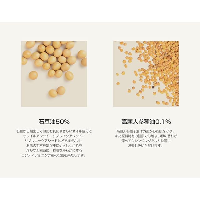 石豆オイルをベース原料として使用し、メイク・汚れ・余分な皮脂などを優しく洗い流す。