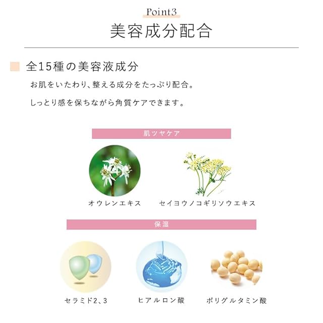 【使用方法】乾いた手に3~5プッシュとり、ゴワつきの気になる部分を中心に顔全体をやさしくなでるようにマッサージします。ポロポロとしたのもが出始めたら10秒ほど続け、洗い流します。その後、化粧水などで普段のお手入れをしてください。