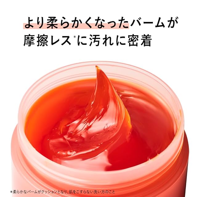 バームオレンジに、年齢肌*に必要なエイジングケア*1対応成分※をプラス。クレンジングするだけで、しっとり弾むようなハリ肌へ。<br>※保湿成分 *年齢を重ねた肌 *1化粧品効能による、年齢に応じたお手入れ<br><br>天然由来成分99%以上配合<br>2024年のリニューアルで、天然由来成分99%以上配合を実現しました。洗浄成分も植物由来にこだわっているから、オイル級のクレンジング力なのに肌にやさしい使用感です。<br><br>美容液成分92%※配合<br>2024年のリニューアルで、新たに美容液成分をプラス。美容液成分※のかたまりで洗っているような、贅沢クレンジング体験で感動の洗い上がり。メークや毛穴汚れを落とすだけではなく、洗うたびにうるおいに満ちたハリ肌へ整えます。<br>※保湿・エモリエント・皮膚コンディショニング成分の合計、水を含む<br><br>肌のうえで+8℃*温感バームで肌をほぐし*1、汚れを落とす<br>リニューアル前のバームオレンジの良さはそのままに、じんわりとろける温感バームが、固くこわばった肌をほぐし*1、肌に負担をかけることなくメークや毛穴の奥の汚れ・くすみ*2・皮脂汚れまでしっかり絡め取ります。加えて、リニューアル後は角栓除去効果がパワーUP★。毛穴に詰まった頑固な角栓をスッキリ落とし、洗い上がりはザラつきのないなめらかな肌に。<br>★人工角栓洗浄試験結果より *室温24.3℃で保管した本製品を肌の上で塗り広げた際のバーム表面の温度差 *1肌を柔らげます *2古い角質や汚れ<br><br>より柔らかくなったバームが摩擦レス*に汚れに密着<br>2024年のリニューアルで、テクスチャーがより柔らかくなりました。肌にスルスル広がり、頑固な毛穴汚れもメークも摩擦レス*に絡めて落とします。また、ジャー容器は半透明に変わり、一目で中身が分かるようになりました。<br>*柔らかなバームがクッションとなり、肌をこすらない洗い方のこと<br><br>心まで洗う、優雅なオレンジローズの香り<br>人工香料は一切不使用。華やかで優雅な天然オレンジローズの香りです。心地良い香りに包まれ、リラックスしながらクレンジングを楽しんでほしい、そんな願いが込められています。<br><br>環境に配慮した取り組み<br>個装箱は環境に配慮した紙を採用。また、プラスチック削減にも着目し、これまで付属していたスパチュラを取りやめました。クレンジングを通じてサスティナブルな未来への一歩を踏み出します。