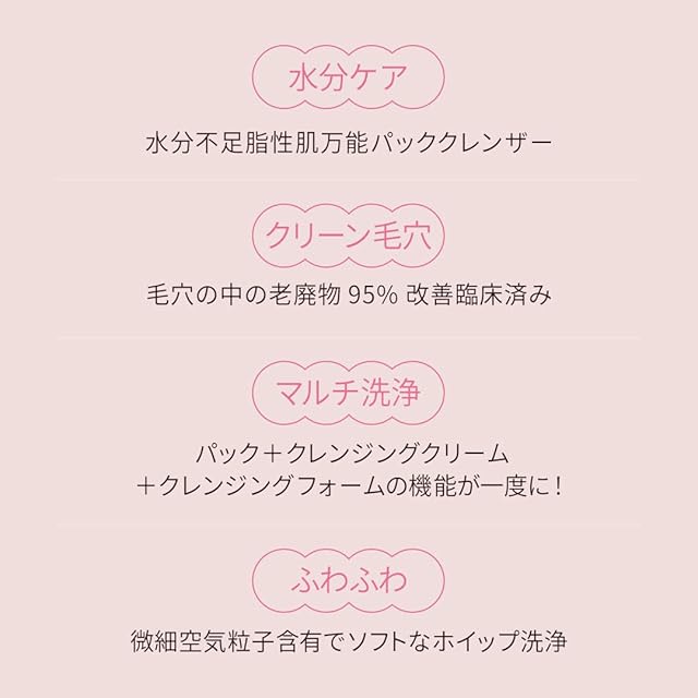 5万回かき混ぜて誕生した、水分レシピ、水分しっかりパックケアからディープクレンジングまでできるソフトなホイップクリームクレンザー