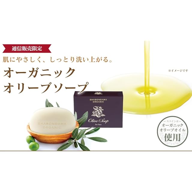 うるおい成分として、オーガニックオリーブオイルを配合。肌にやさしく、しっとり洗い上がります。簡単なメイクは石けんで二度洗いすれば落ちます。香料、着色料、酸化防止剤、合成界面活性剤不使用。※オリーブオイルのみオーガニック認証原料です。