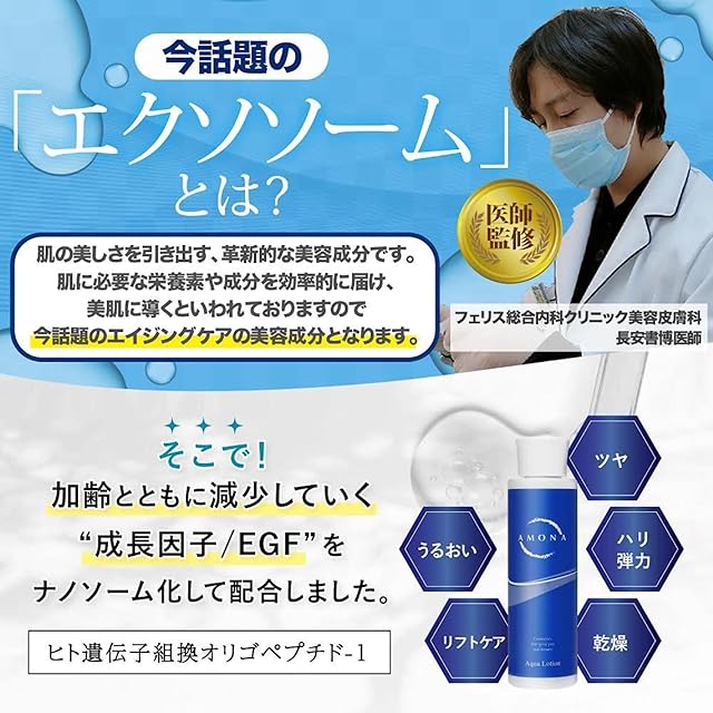 ✅医師監修の化粧水。「肌のうるおいが気になる‥乾燥肌をなんとかしたい‥」そんなあなたのために、研究開発を重ねて医師の監修を取り入れ作り上げたエイジンクケアのための無添加のAMONAのエクソソーム 化粧水です。