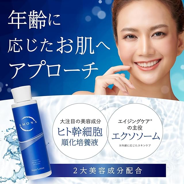 皮膚科医が大注目のヒト幹細胞とエクソソームを配合したAMONA アクアローションの高濃度のヒト幹細胞 化粧水です。肌のバランスを整えるだけでなく、ヒト幹細胞の働きを促し、健やかな肌を保つために必要な栄養素を肌に与えます。毎日のスキンケアに欠かせないエイジングケアの化粧水です。シカによる肌荒れの予防や、ビタミンCによる美容ケア。日本製で無添加ですので安心して利用できます。