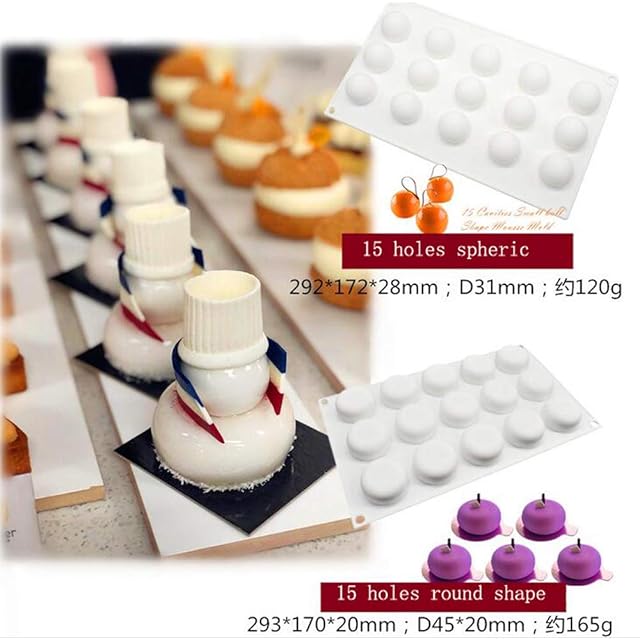 家庭用 業務用ムースモールドベーキングモールドケーキモールドアイスモールド用の多目的シリコーンモデルムースケーキ型(15穴ラウンド)