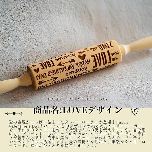 クッキーローラー クッキー型 麵棒 模様 ローリングピン かわいい ビスケット型 手作り 焼菓子 ハンドメイド おしゃれ 料理教室用バレンタイン手作り (LOVE)