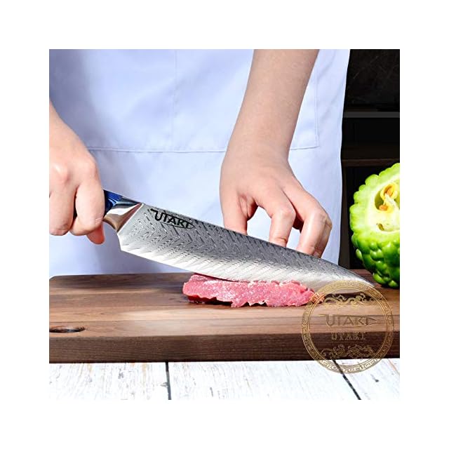 Utaki 牛刀 包丁 ダマスカス 67層 V金10号鋼 200mm 三徳包丁 高みを目指すその鮮烈な切れ味