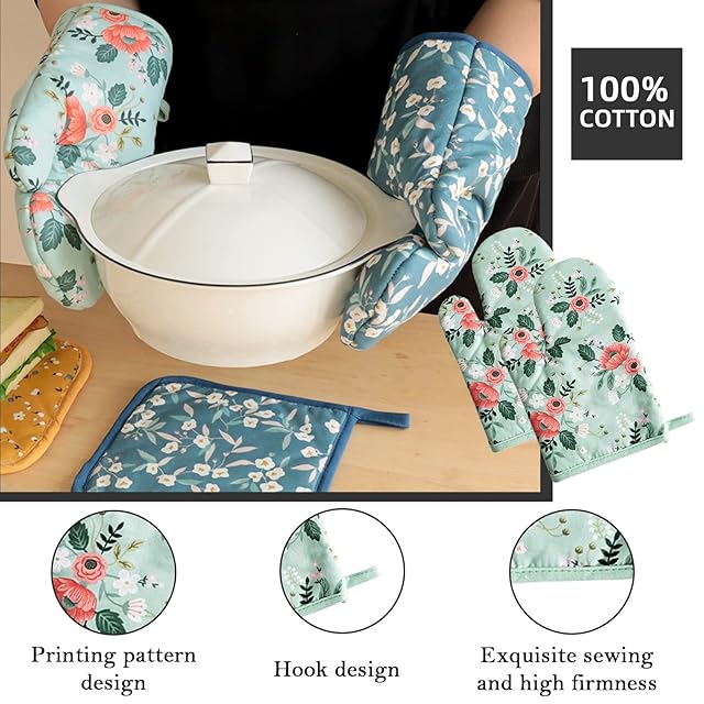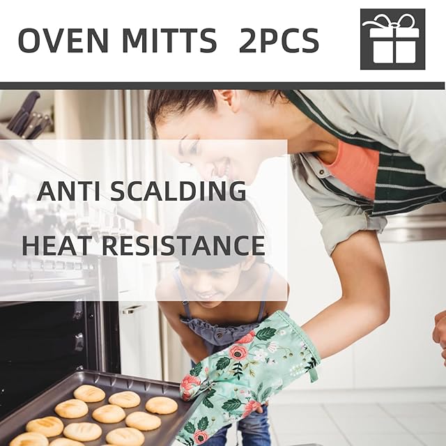 Maeau 鍋つかみ 耐熱ミトン オーブンミトン 綿製 キッチン用手袋 やけど防止 滑り止め 鍋料理 ホームベーカリー オーブン料理 電子レンジ手袋 厚手 オーブングローブ 2枚セット(グリーン)