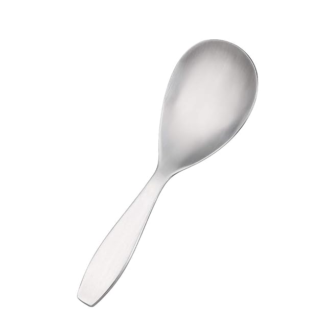 【便利なデザイン】:1.ハーフアーク形状のハンドルと程よい重さで、安定感があります。2.柄が短いので、食卓での取り分けに使い勝手が良いです。3.柄からすくい部にかけてゆるやかにカーブしているので、すくいやすいです。4.継ぎ目がない一体構造で、スッキリしたデザインで汚れ難く洗い易いです。
