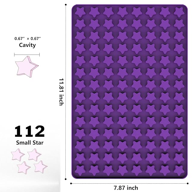 Amyandone ミニスターシリコンモールド 112個の空洞 チョコレートキャンディ型 星型 自家製ペットトレーニングおやつ/ビスケット用 食品グレードの星型 フルーツスナック/ケーキの装飾用 (スクレーパー付き)
