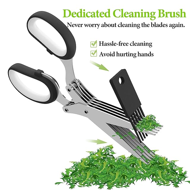 簡単なハーブカッティング – この5枚刃のハーブはさみは、素早く均一に刻むことができるように設計されており、バジル、コリアンダー、パセリ、ミント、ローズマリー、タイム、チャイブ、ディルなどに最適です。 ホームキッチン、ハーブガーデン、料理愛好家の必需品です。