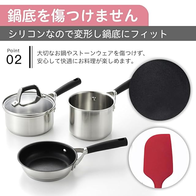 「高品質&安全性」:高品質シリコン素材で作られています。 耐久性があり、安全です。滑らかで柔らかな薄いエッジで、鍋やフライパンへを傷つける心配はありません。