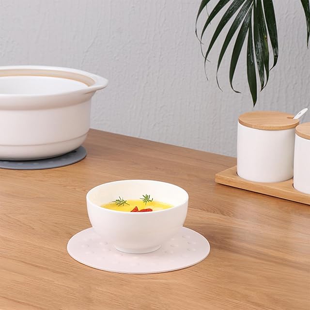 Aiivioll ツーピース プレースマット 円形 断熱プレースマット シリコン製 防水 防汚 断熱 洗える おしゃれでお手入れ簡単 テーブルマット 直径16.9CM (アプリコット)