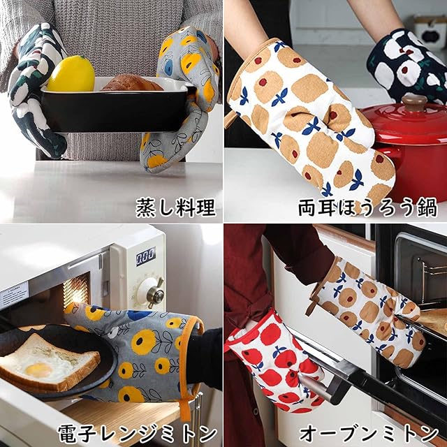 【2個セット耐熱ミトン鍋つかみ】毎日のお料理に欠かせない存在の耐熱ミトン(鍋つかみ)。土鍋を食卓に持っていきたり、ホームベーカリーからパンを取り出したりしたい場合は、これらの耐熱手袋を使用してください。耐熱は良いです。
