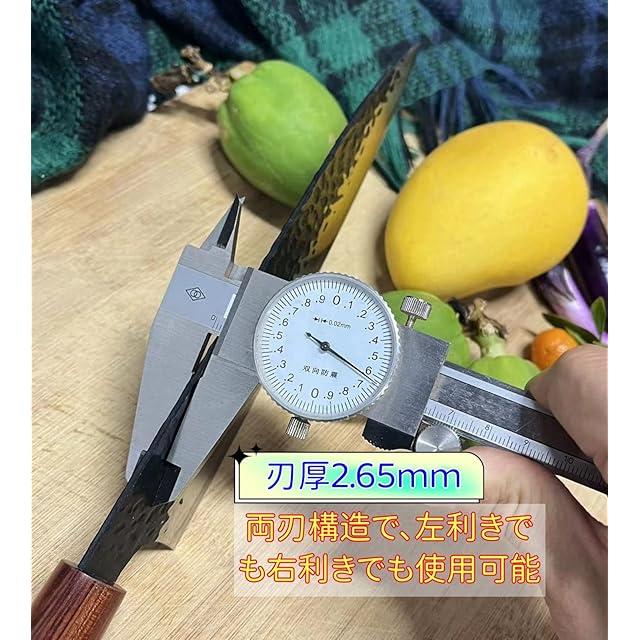 【切れ味】刃は硬度の高い5Cr15MoVステンレス鋼を使用し、スキ加工と刃付けにより、鋭い切れ味が長持ちします。硬い野菜から厚みのある肉類まで軽い力で切れます。