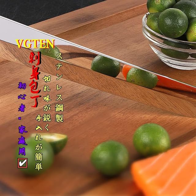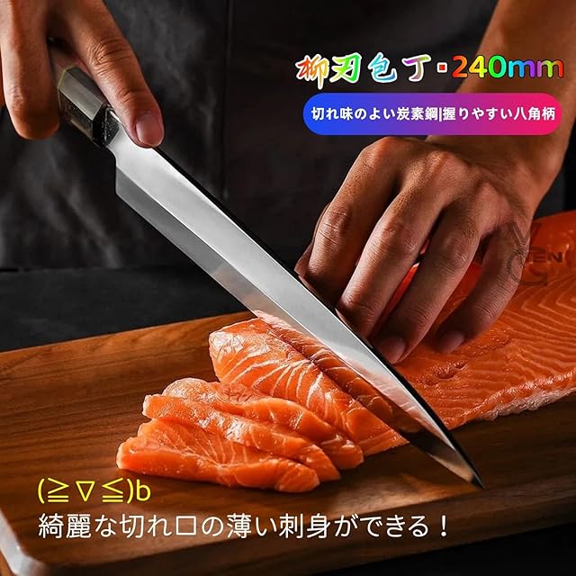 VGTEN 刺身包丁 柳刃包丁 240mm 右利き 本格 片刃 磨き仕上げ 炭素鋼 包丁 八角柄 黒檀+紫檀 刺身 巻き寿司切り 身卸包丁 切れる 使いやすい プロ仕様 お手入れ簡単