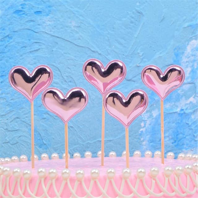 DUOLEIMI ケーキトッパー 星 ハート ケーキピンク 王冠 ケーキ飾り フルーツピック スター 竹楊枝 50本 お菓子 飾り付け ピック ケーキデコレーション 誕生日 クリスマス パーティー (ハート)