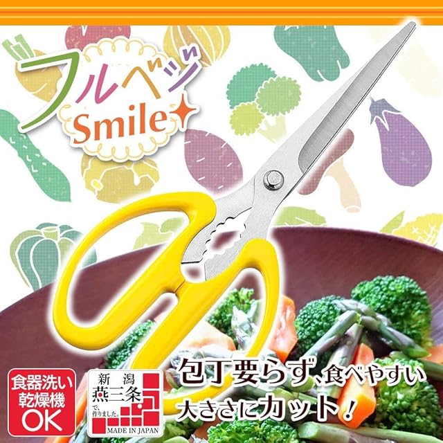 下村工業 日本製 フルベジスマイル キッチン はさみ FVS-402 新潟 燕三条製 イエロー 190×31×16mm