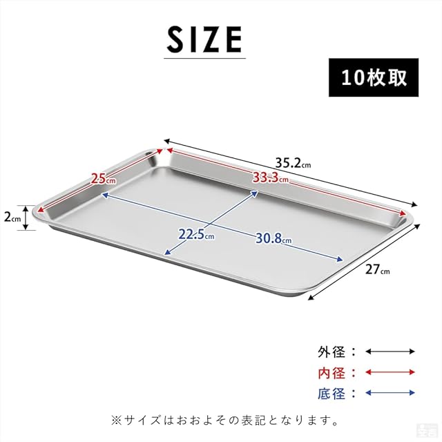 バット ステンレス 板厚0.8mm 業務用 (10枚取サイズ) ステンレスバット 浅型 18-8 27cm×35cm 業務用 キッチンバット ケーキバット 角バット 揚げ物バット ステンレス容器 角型