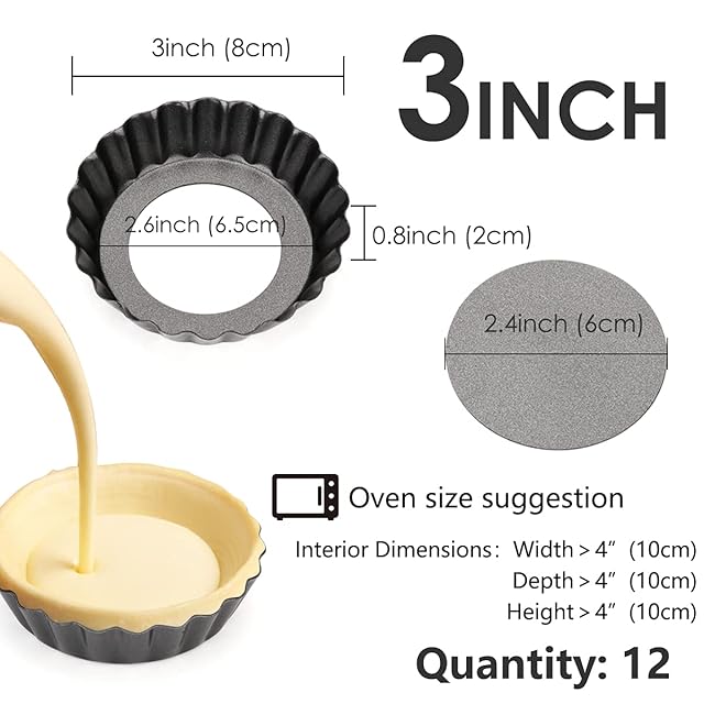 ユニークな波型デザイン:3インチのミニタルトパン12個セットは、波状のリングデザイン、精巧な職人技、バリなし、穴なし、美しくシックです。 パーティーの準備やホームベーキングに最適です。