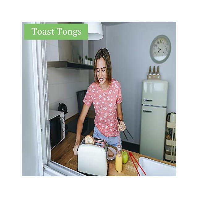 【ユニークなデザイン】トースタートングは柔らかく柔軟なシリコン箸トングでデザインされています。長さ11.42インチのトングで、指をやけどすることなく熱い食べ物を安全に選ぶことができます。 鋸歯状の先端と滑り止めデザインのミニサービングトングは、トーストやステーキを簡単に拾うことができます。