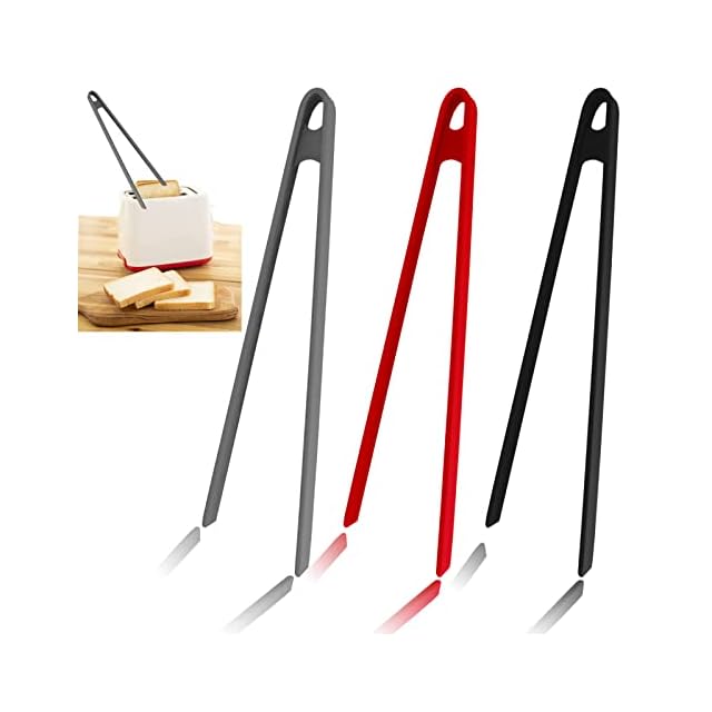 Sunenlyst シリコン製トーストトング 長さ11.8インチ バーベキューグリルトング トースター、フライパンフライドステーキ、バーベキュー、サラダ用 3個