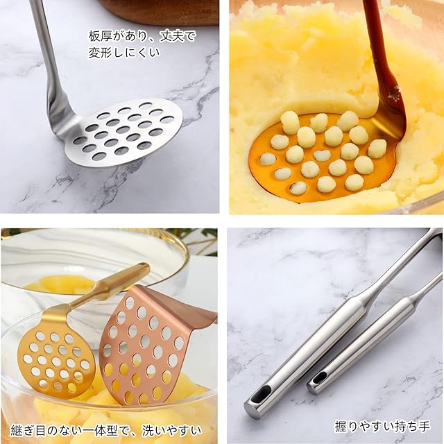 『適用性』:ポテト、じゃがいも、サツマイモ、かぼちゃ等のマッシュに適用、お手作りのサラダ、離乳食に役立ち、業務用にも適用、便利な調理器具です。