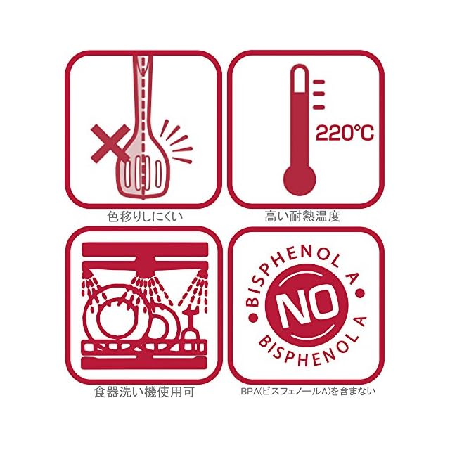 素材・材質:ヘッド/ナイロン(耐熱温度220度)、持ち手/ABS(アクリロニトリル・ブタジェン・スチレン)樹脂(耐熱温度100度)、持ち手金属部/ステンレス鋼 、ストッパー/シリコン樹脂(耐熱温度230度)