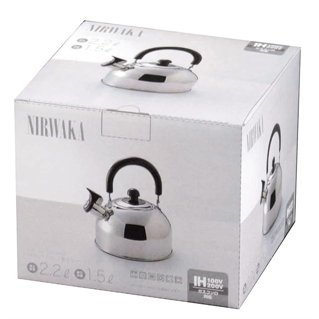 カクセー 笛吹 ケトル やかん 満水2.2L ステンレス製 熱効率が高い 安定感 底広設計 洗いやすい 広口形状 IH対応 ニルワーカ NW-06 シルバー