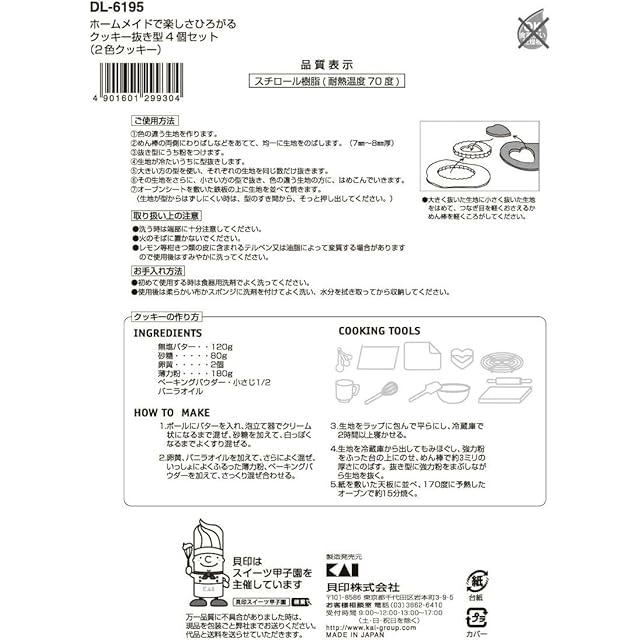 貝印 KAI クッキー 抜き型 ( 2色 クッキー ) 4個セット Kai House Select 日本製 DL6195