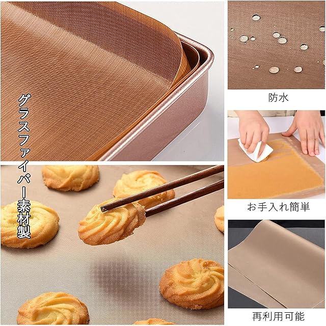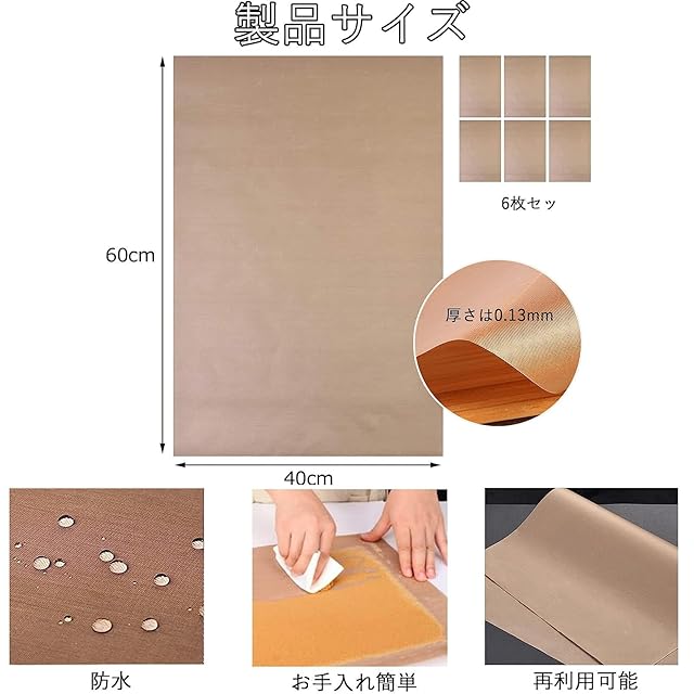 商品名:6枚セット加工 耐熱 耐油 耐久 水洗い可能 クッキングシート オーブンペーパー オーブンシート 繰り返し使える オーブン ベーキング 料理 グリル フライ 蒸し 40*60cm-ブラウン