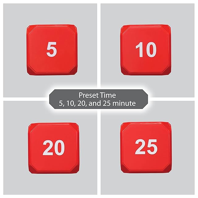 TimeCube Plus プリセット タイマー LEDライト4つ/アラーム付き 時間の管理用 カウントダウン設定 (レッド - 5分 10分 20分 25分)