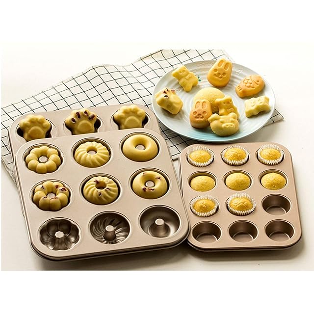 FUZHENTU マフィン型 26*26*2CM マフィンカップ型 クリスマスカヌレ型 マドレーヌ型 9ヶ取 多種類デザイン 粘りにくいケーキ型 (Style 2)