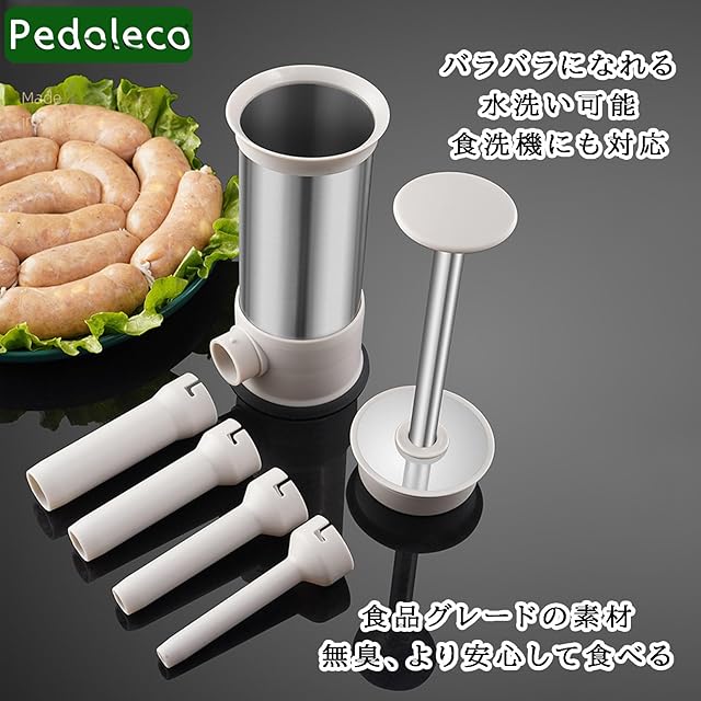 Pedoleco ソーセージメーカー 手動式 1.3/1.8/2.3/2.8cm 4種類ノズル付き ステンレス製+PP 食洗機対応 ソーセージ手作り 効率向上 操作簡単 ソーセージマシン 腸詰め器