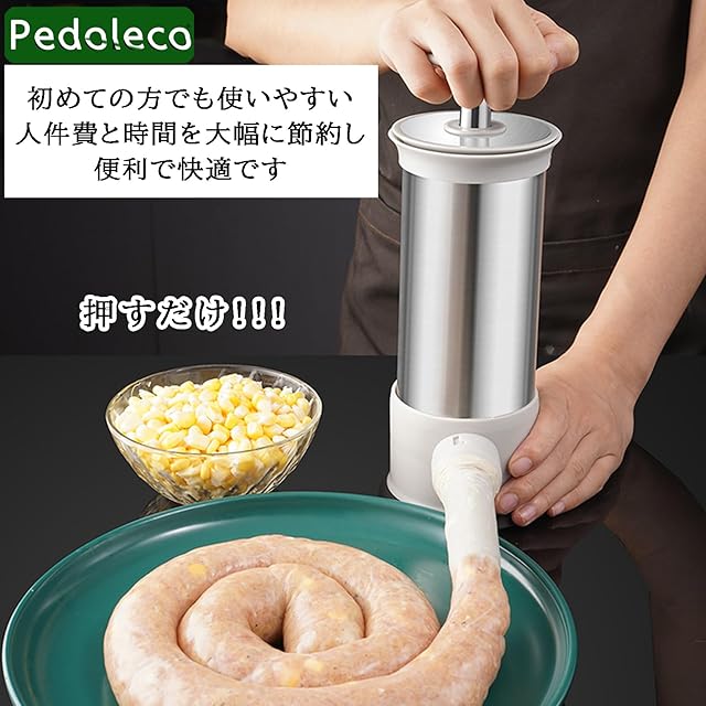 商品名:Pedoleco ソーセージメーカー 手動式 1.3/1.8/2.3/2.8cm 4種類ノズル付き ステンレス製+PP 食洗機対応 ソーセージ手作り 効率向上 操作簡単 ソーセージマシン 腸詰め器